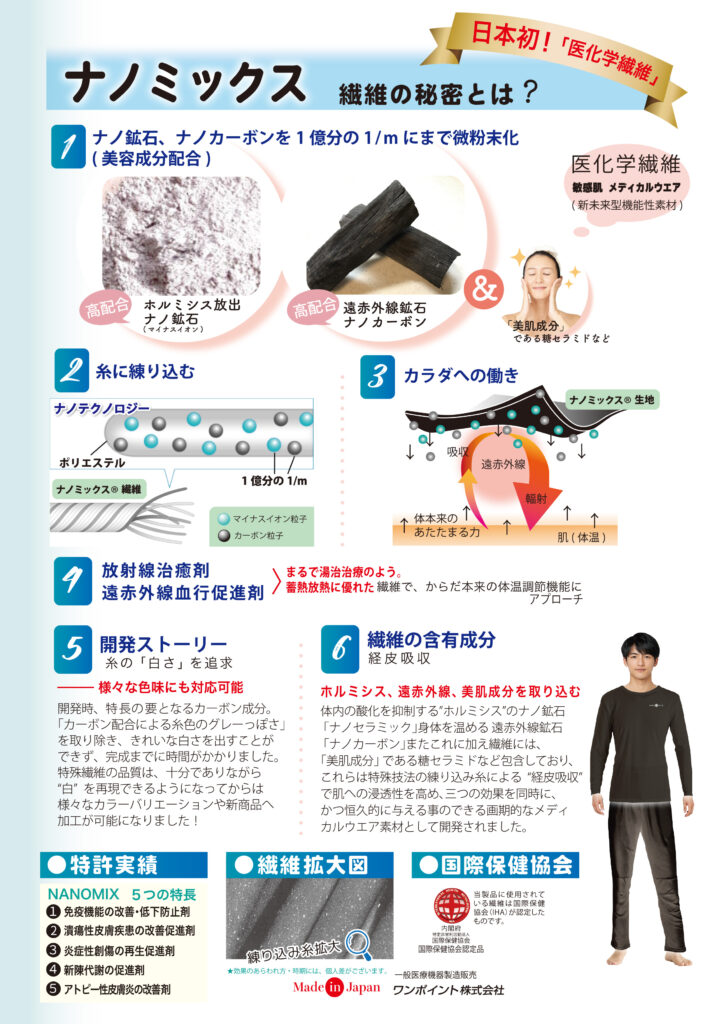 効果効能に優れ、国際保健協会(内閣府)から「医化学繊維」と名付けられ、23年の歴史があります。