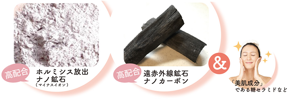 1. ナノ化したホルミシス鉱石と、ナノカーボンを1億分の1/mにまで微粉末化(美容成分配合)