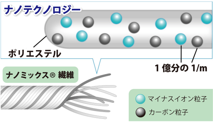 耐久性の高いポリエステルに、ナノテクノロジーで練り込んでいます。