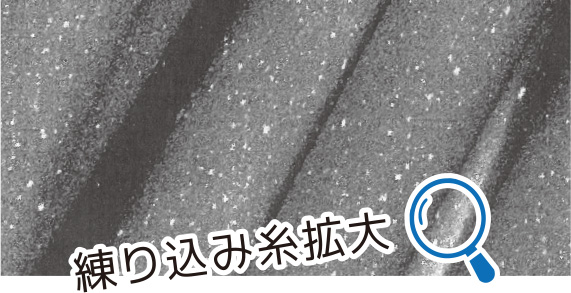 開発時、特徴のかなめとなるカーボン成分。カーボン配合による糸色の「グレーっぽさ」を取り除き、きれいな白さを出すことができず、完成までに時間がかかりました。